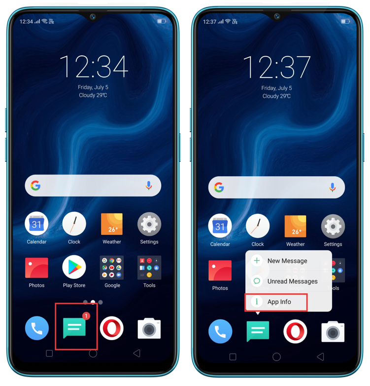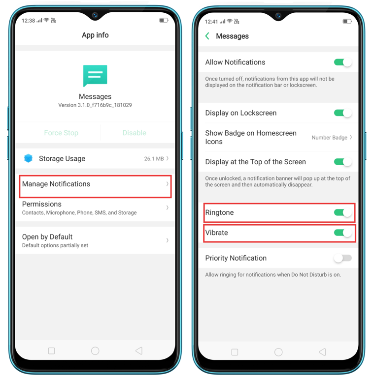 Path: Long press message app > App info > Manage Notification > Open ringtone and vibration switch same time.