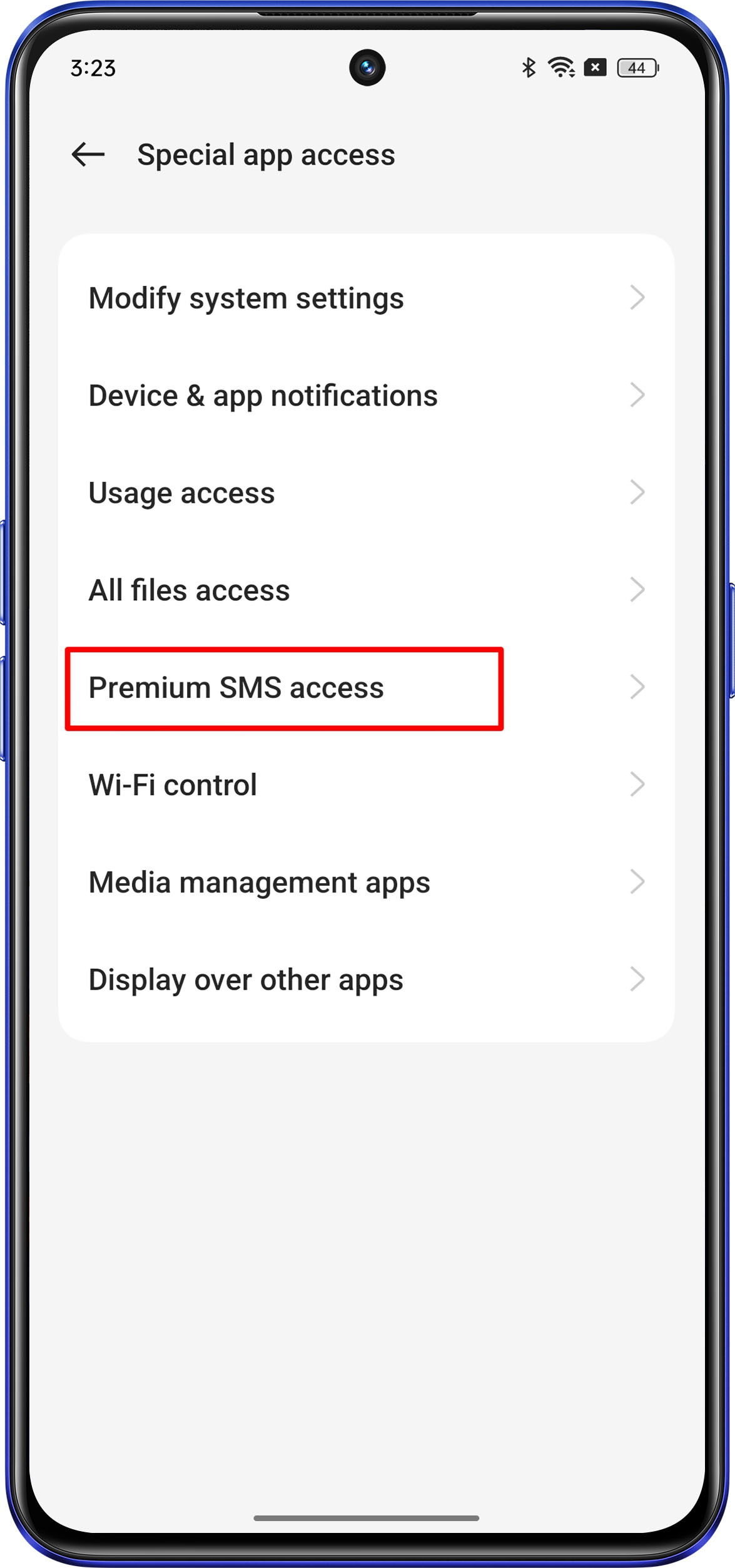 realme UI 7.0 & 6.0 & 5.0 & 4.0: Settings > Apps > Special app access > Premium SMS access.