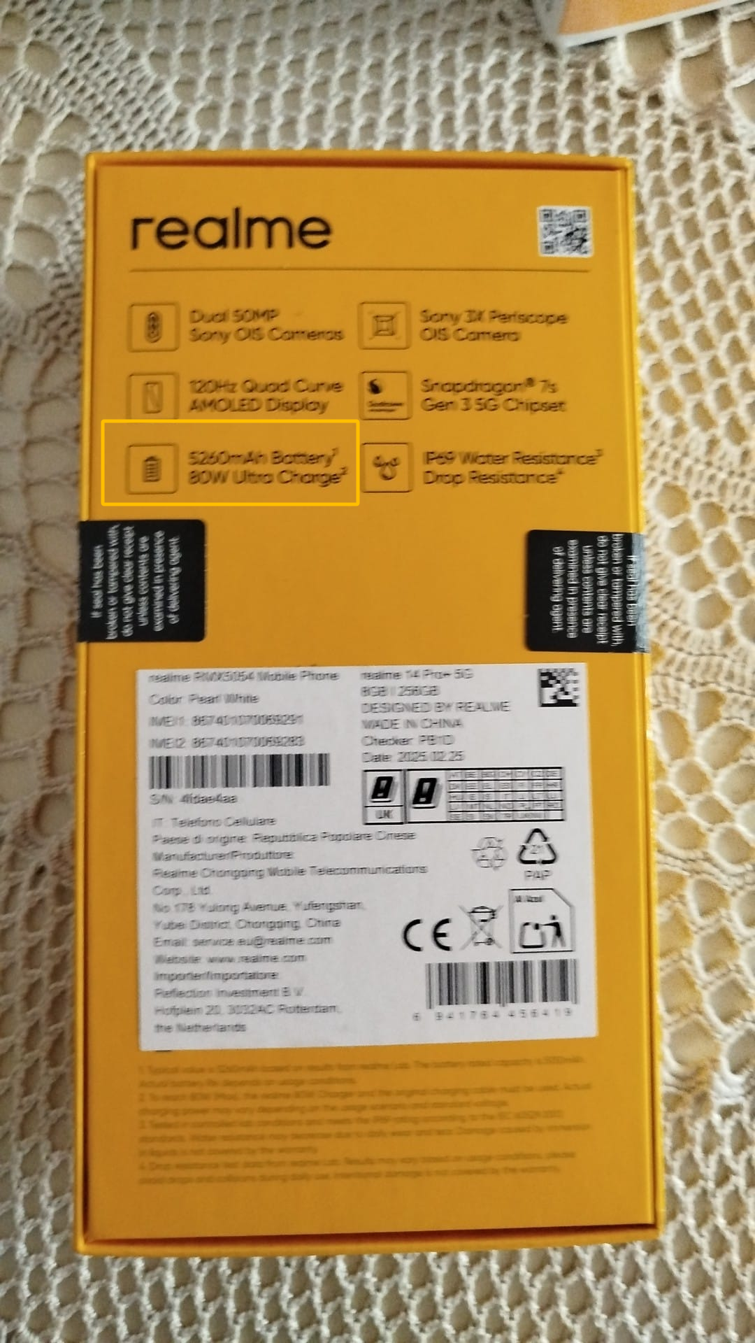 The battery capacity of the realme 14 Pro/ Pro+ is not the same as the specifications on the realme official website. On the official website, the battery is 5860 mAh(min), but in fact, the phone only has 5260 mAh(min.)