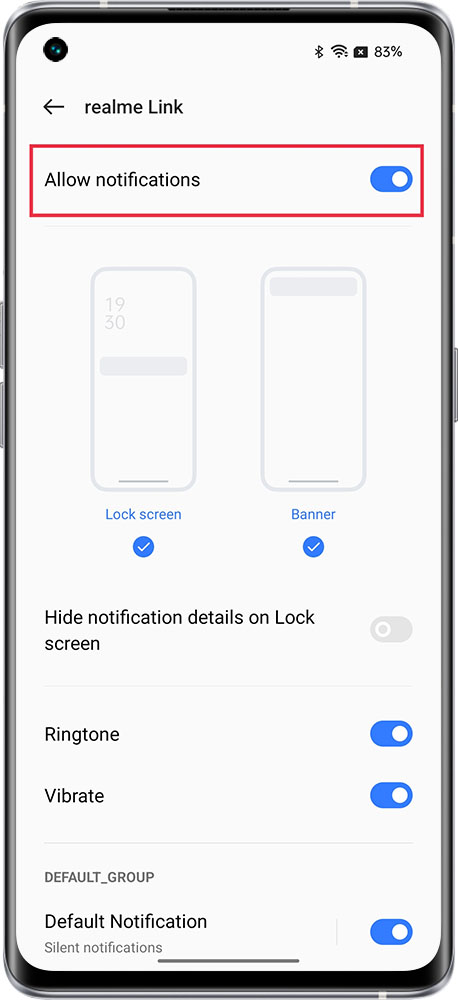 All realme devices: Long press the app icon > App info > Manage notifications > Turn off Allow notifications.