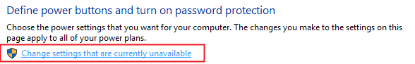 C: In the power options window, click the Select the function link of the power button on the left, and in the pop-up system settings window, click Change the settings that are currently unavailable.
