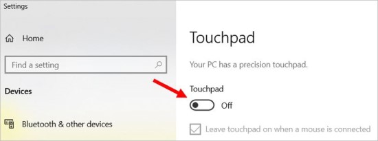 (2) Click Start > Settings > Devices > Touchpad, and check whether the touchpad is turned on, if closed, please turn it on.