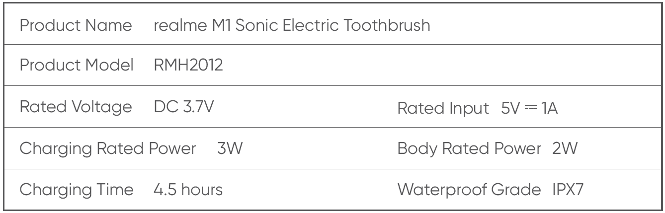 l The charging base for this product is an accessory specially designed for realme M1 Sonic Electric Toothbrush and is not compatible with other products.