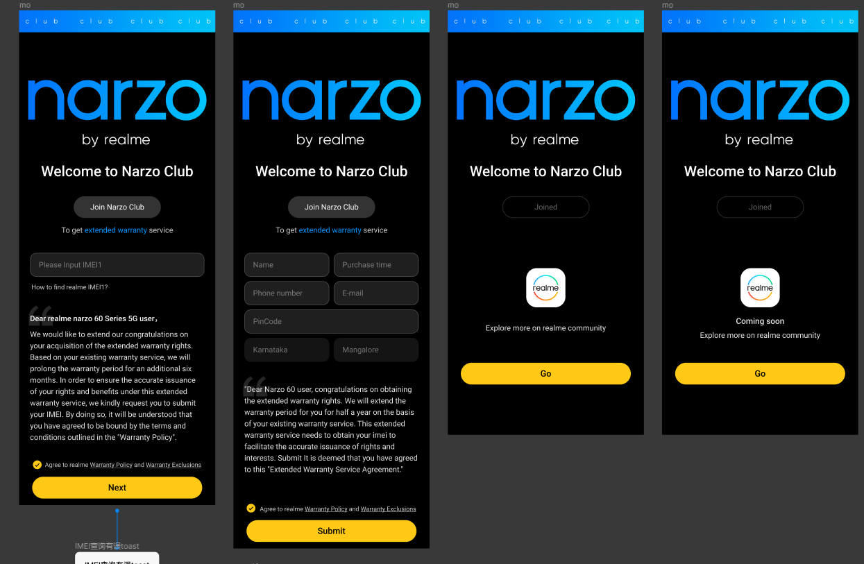 A: To avail of the extended warranty, please visit the following page: [https://c.realme.com/in/narzowarranty]. Submit your IMEI number and your request will be processed within 2 days.
