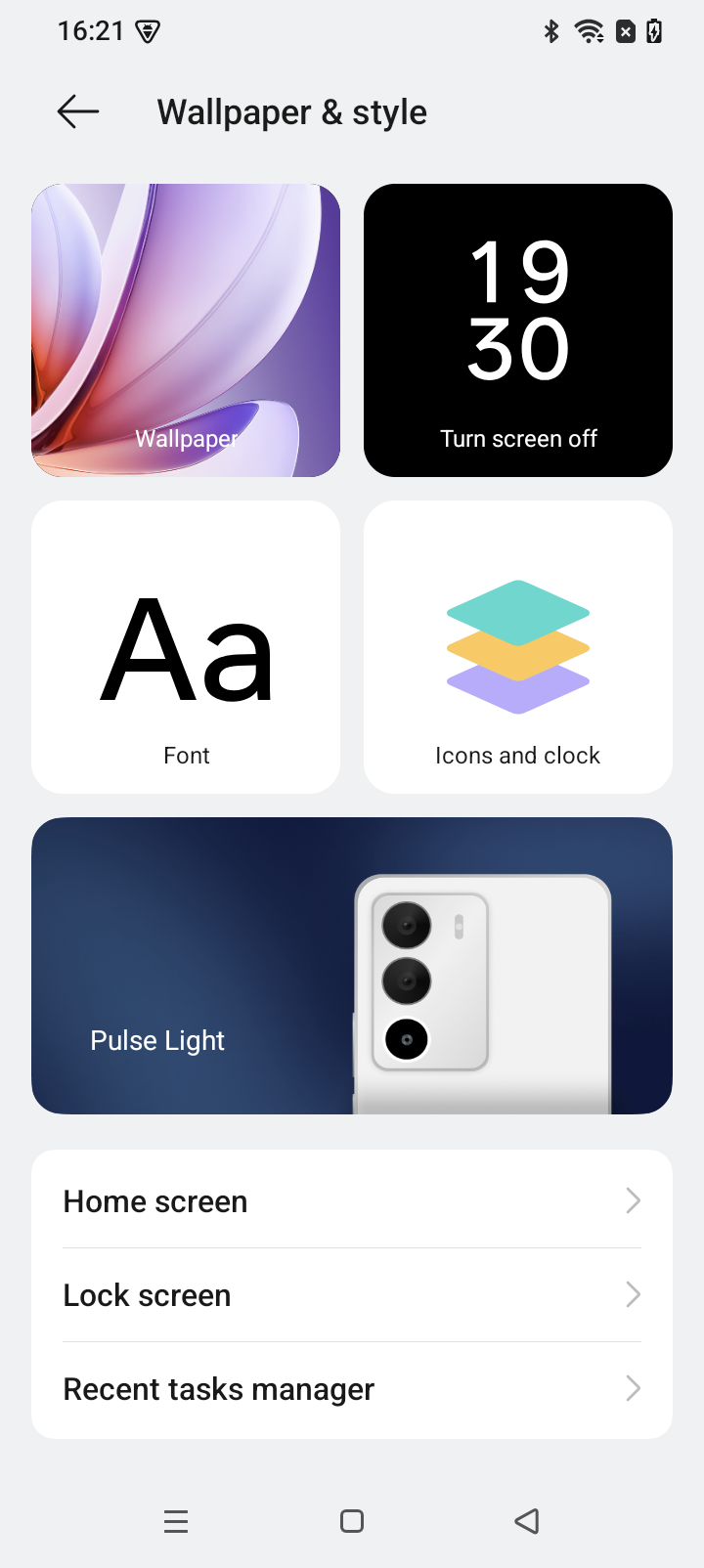 Settings > Wallpaper & Style > Pulse Light