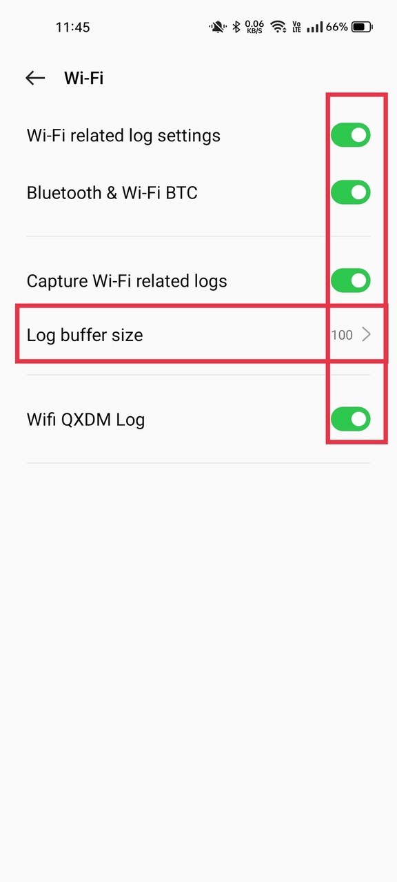 2. WiFi log (Note: Turn on the screen recording switch in the log)