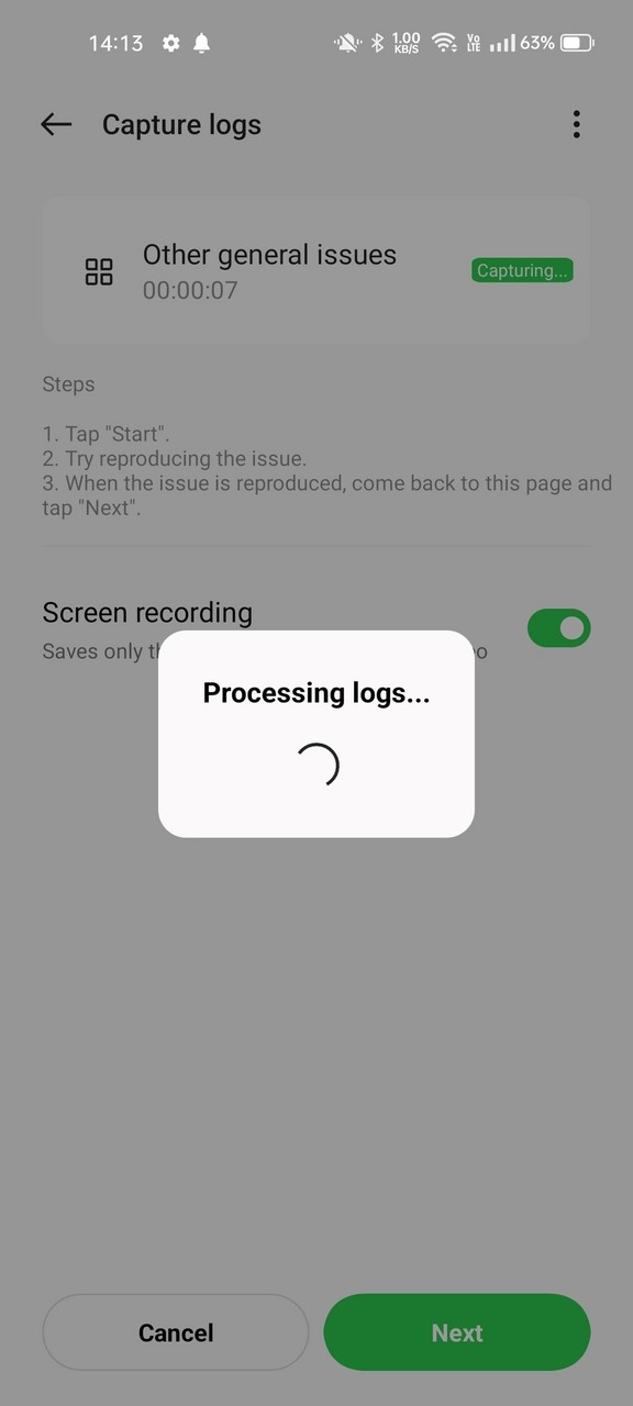 4.3 Reproduce the problem > take a screenshot with three fingers immediately when the problem occurs (in order to record the time when the problem occurs)