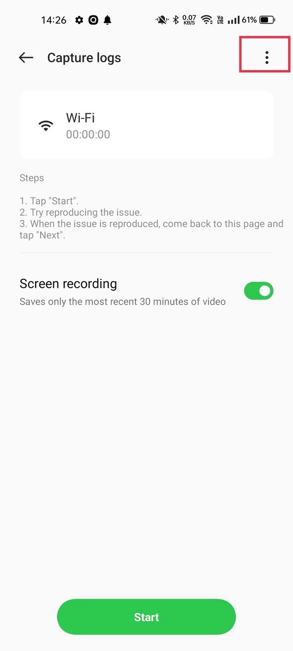 Note: Turn off screen recording, the log duration needs to be more than 30 minutes
