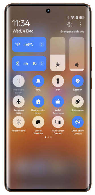Ripple effects during boot-up guide to the desktop, fingerprint unlocking/payment, and charging on the lock screen; water particle dissipation effects when moving desktop icons and pulling down the notification/ control center.