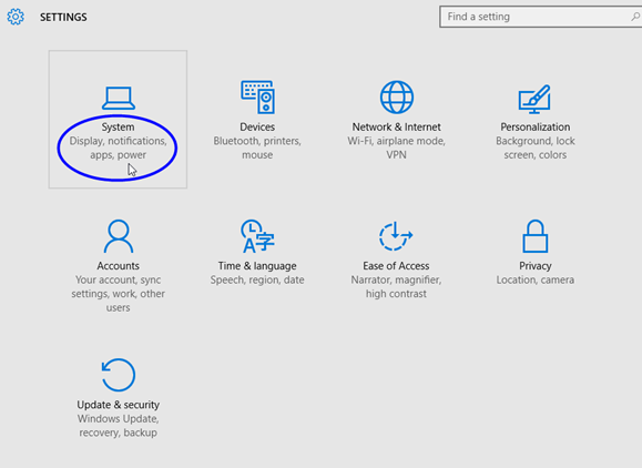 1. Click the desktop Windows icon > Settings icon > select "System".