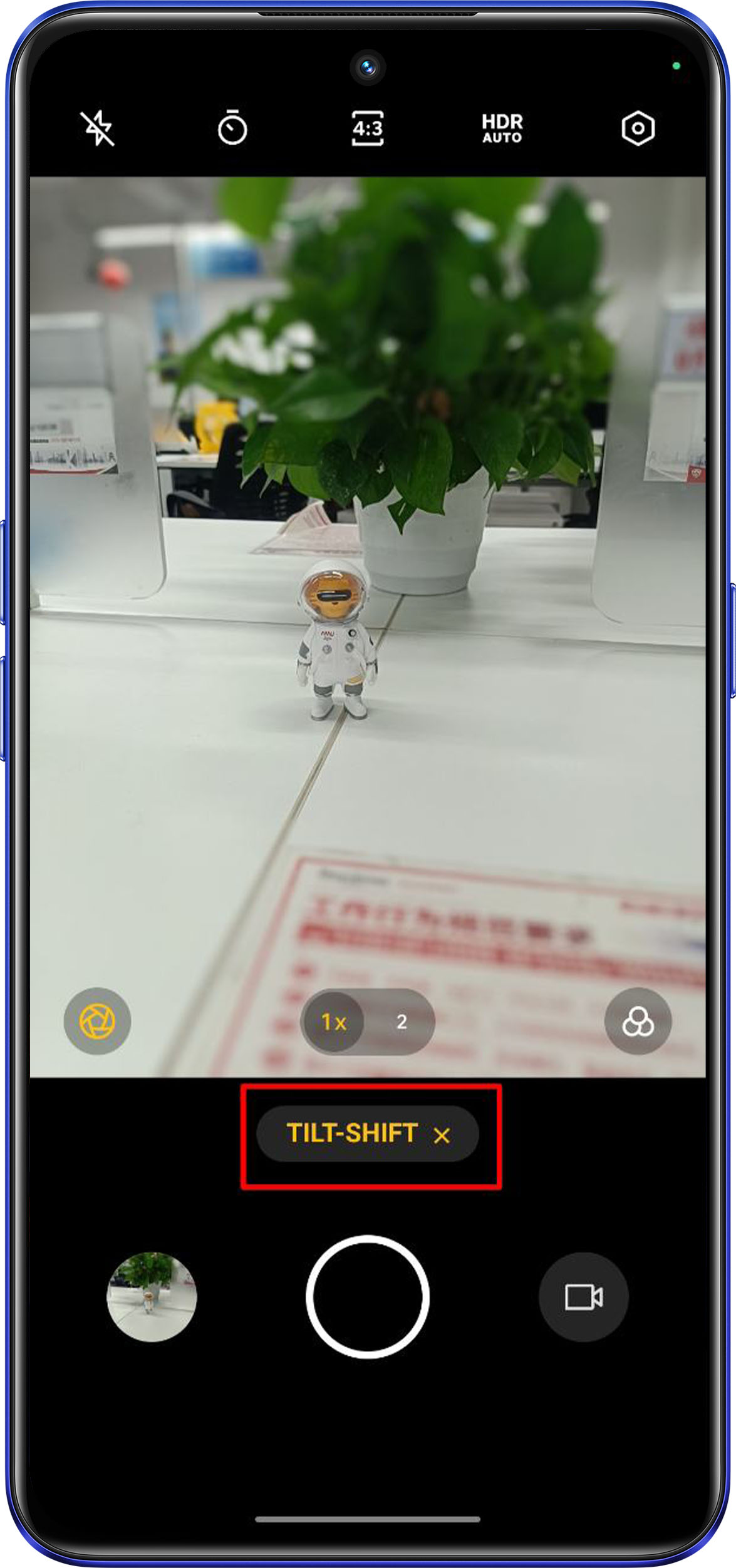 C. In portrait mode, the background will be blurred automatically. It’s a normal phenomenon. You can click the icon in the lower left corner to adjust the blur effect according to the actual situation. In addition, the imaging effect is good when the character is about 2 meters away from the phone and located in the center of the lens.