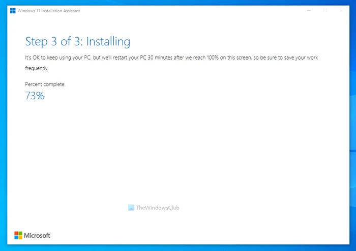 After that, it will start installing Windows 11 automatically. Meanwhile, you need to save your ongoing work since your PC will restart automatically after a specific time once it reaches 100%