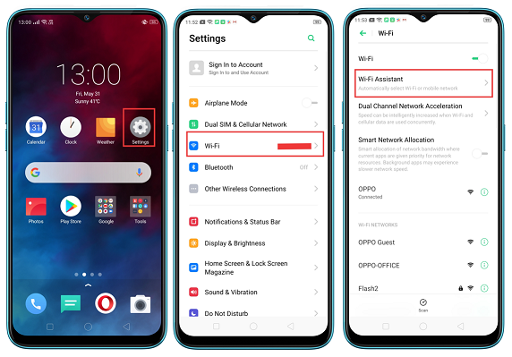 Settings --> Wi-Fi -->Wi-Fi Assistant --> Smart Select Best Wi-Fi Network.