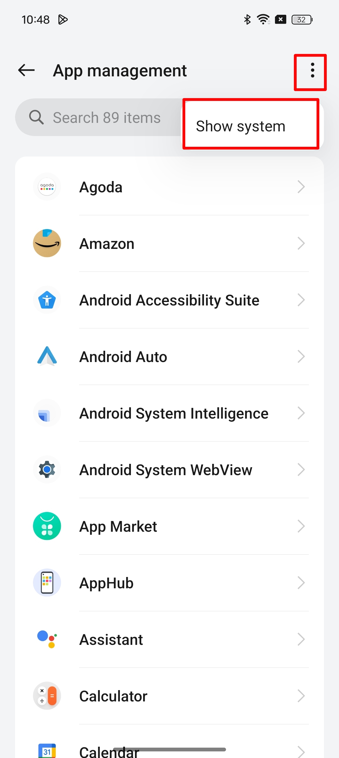 3. Please click Settings > App Management > App List, click three dots in the upper right corner > Show system, find Software Update. Click Storage usage and click Clear Data. Then in a good network environment, click again to Settings > About phone > Update to detect whether there is a new version.