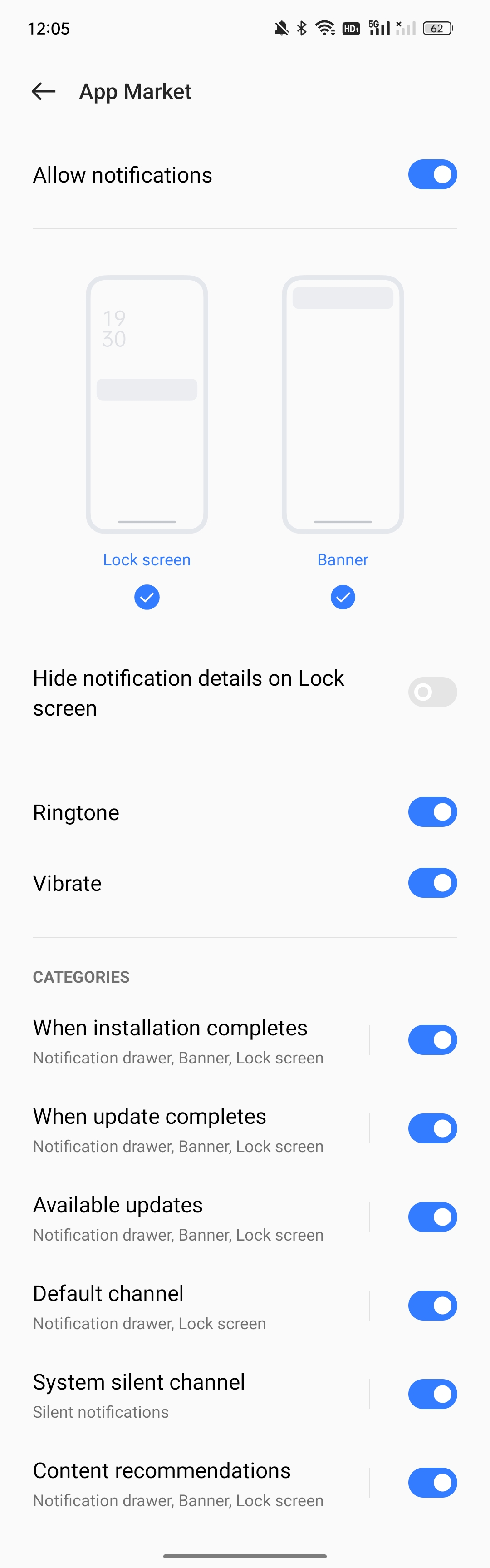 realme UI 3.0 & above versions: Settings > Notification & Status Bar/ Notification & Quick Settings > App notifications, click the app to enter the notification settings details and enable specific functions such as allowing notifications, lock screen, banner, ringtone, and vibration.