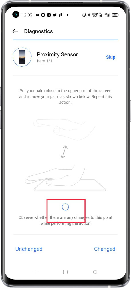 realme UI 2.0: Go to Phone manager > Diagnostics > Continue > Select the Sensor test and unselect the rest test if no any other issue > Run Diagnostics